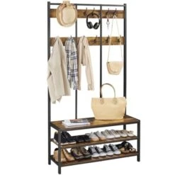 ✔️ Design rustico e industriale: caratterizzato da un design industriale rustico e completato dall’impiallacciatura marrone vintage e dalla finitura nera opaca, questo appendiabiti da ingresso è un ottimo arredo per appartamenti di stile industriale e per le moderne fattorie.